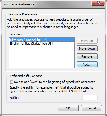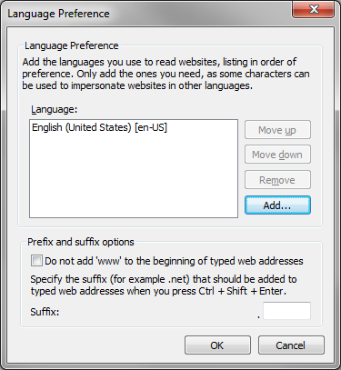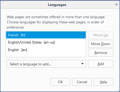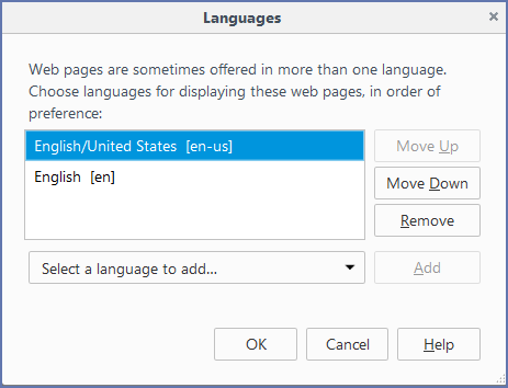 Use the Move up and Move down buttons to change the order of the languages to have the desired language at the top of the list.