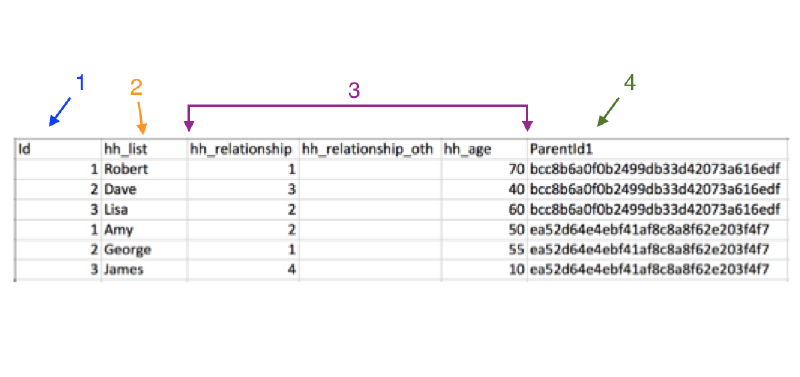 the household, and this value matches the value in the Id column of the