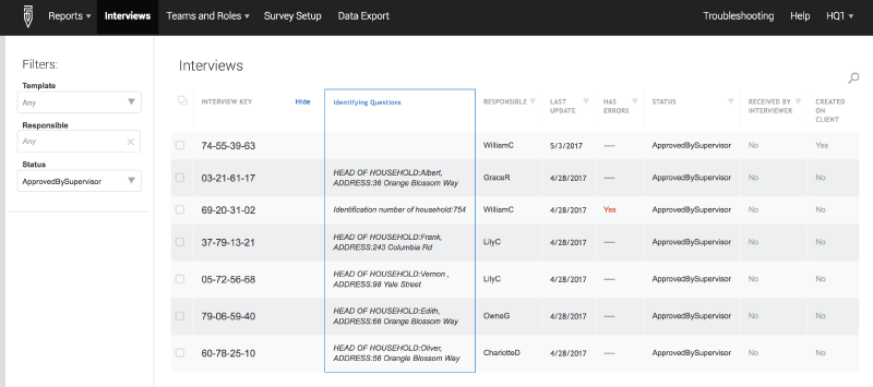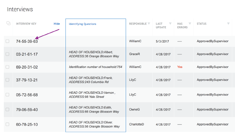 Now you can see all the answers given by the respondents—the answers marked in red are invalid according to the validation rules.