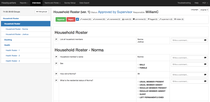 If the interview should be approved, click on the Approve button. To return it to the supervisor, click on the Reject button.