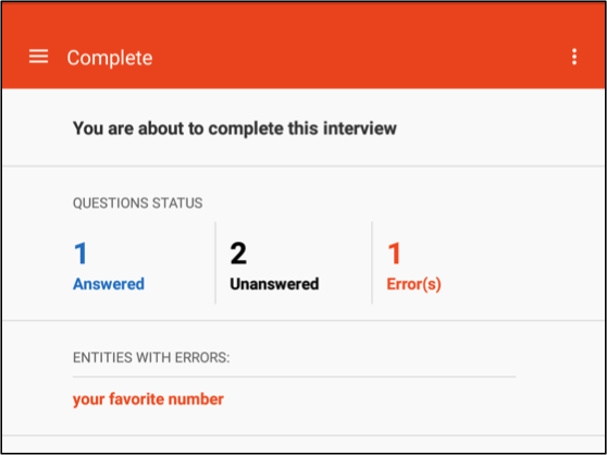 The interviewer application offers three ways to do this. The first is the classic method that one might use with a paper questionnaire. The interviewer simply flips the questionnaire looking for unanswered questions or answers that have triggered red error messages.