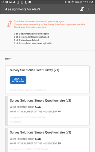 - Error: Timeout when connecting to the Survey Solutions Supervisor website. Check your internet connection.