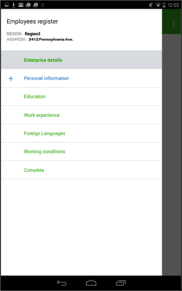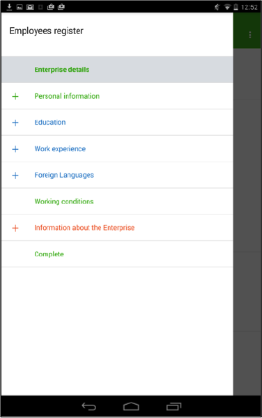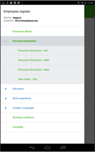 Use the button on the upper left side of the screen to get access to the list of all the sections of the questionnaire.