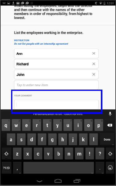 Tap and hold your finger on the text of the question to enable the comment field.