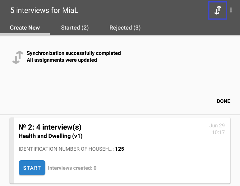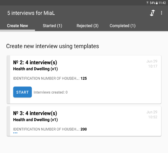 The dashboard contains the list of sampling units that you need to visit. When you approach one of the listed sampling units, select the corresponding entry to start the interview. For more information about the Interviewer dashboard, refer to this article.