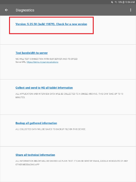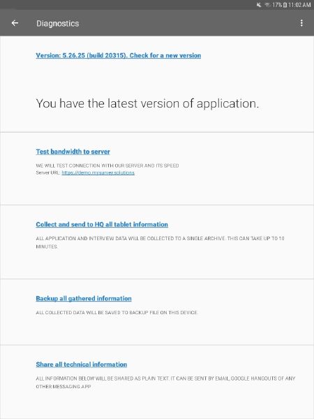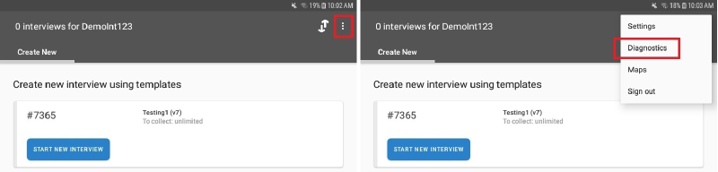For Interviewers, the Diagnostics dialog of the Interviewer App