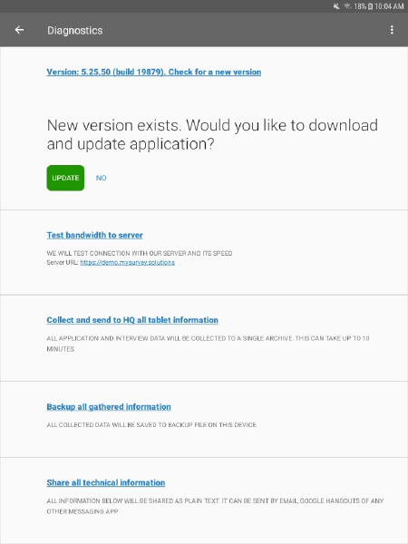 - New features. With most releases of Survey Solutions, new features are introduced–new question types, new user interface, new actions, etc. To take advantage of new features, the Interviewer application must be updated.