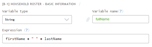 Calculated variables are a powerful addition to the functionality of Survey Solutions: they are named computable expressions, which can be added to a questionnaire for convenience when operating with large and/or complex expressions. Variables can be used to simplify and improve the validation and enabling conditions. The values of variables can be substituted into the question text or into a static text to provide more informative, dynamic content.