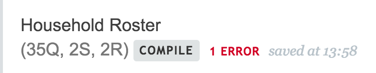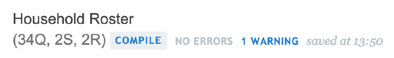 To check the questionnaire for errors and system warnings, click on the Compile button located below the questionnaire name. You can also use the keyboard shortcut Ctrl + B to compile the questionnaire. If no errors and warnings are found, a green text OK will display.