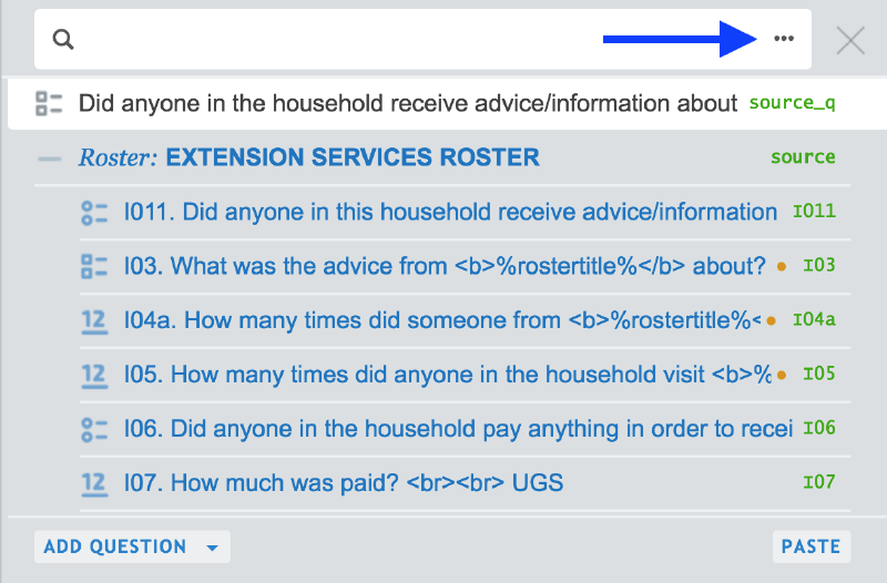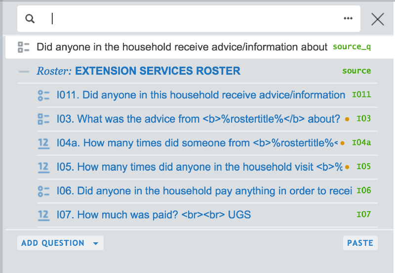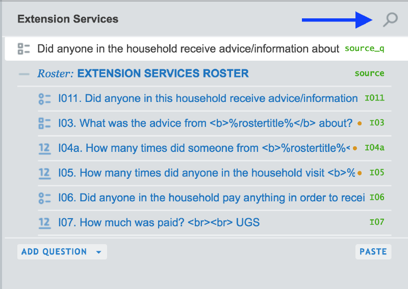 To search within the entire questionnaire (including conditions),