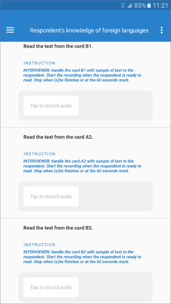 Audio question records sound using the tablet’s microphone. This can be