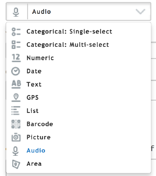 Audio question records sound using the tablet’s microphone. This can be