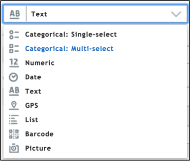 and labels (visible to enumerators). Categorical multi-select questions