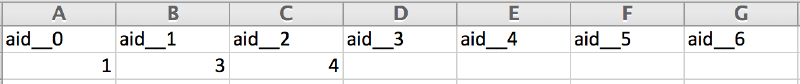 The next example illustrates the data export of a linked categorical: multi-select question for which all the categories can be selected and the order in which the categories are selected is not preserved. In this example, the question: “Which of the household members received any type of aid last month?” is linked to the question: “Name of the household member”. So, let’s imagine that the answer to the latter was: Ann, Paul, Mary and Michael. The system automatically creates the codes: 0,1,2 and 3 for each name respectively. If Ann, Mary and Michael have received aid, the system exports the values 0, 2 and 3.
