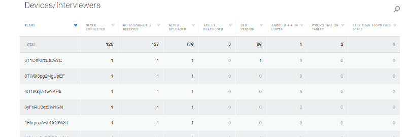 The Open responsible’s profile option takes the user to a detailed report on the interviewer’s recent synchronization activity, connection statistics, and detailed device info.
