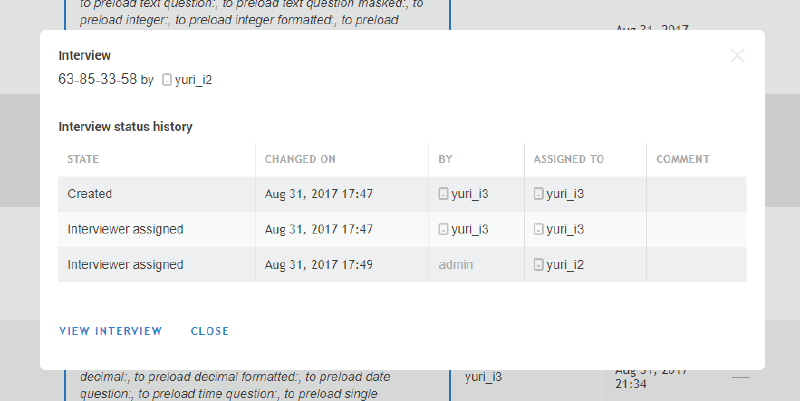 Improved interface for the Interviews tab in Headquarters/Supervisor