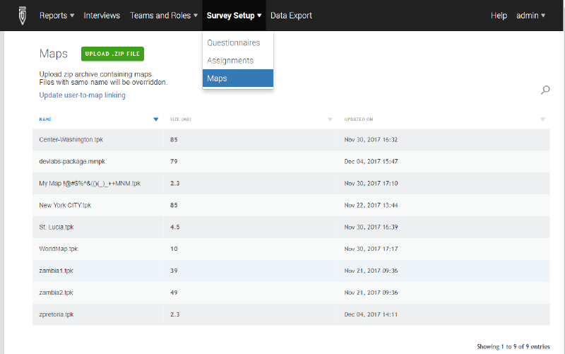 Now, Survey Solutions allows survey managers and interviewers alike a user-friendly for map management—for assigning maps to interviewers and for downloading maps to tablets, respectively.