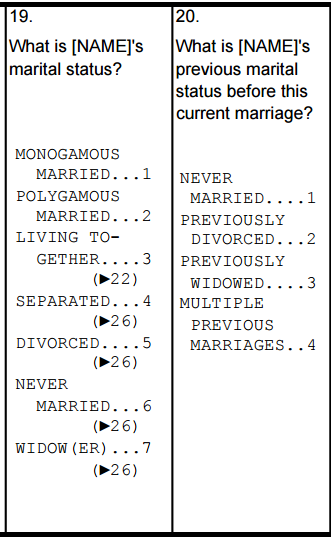 For certain marital statuses, there is a follow-up question. For others, no such follow-up question is administered.