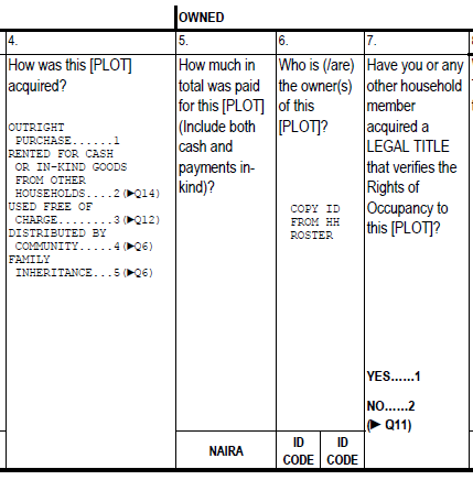 Let’s describe the conditions under which question 6 is answered. If the interviewer records option 1 for question 4, then question 6 is asked. If options 4 or 5 are recorded, then question 6 is also administered. Otherwise, the interviewer skips to later questions. To summarize, then, question 6 is enabled when options 1, 4, or 5 is recorded. Or, in code: